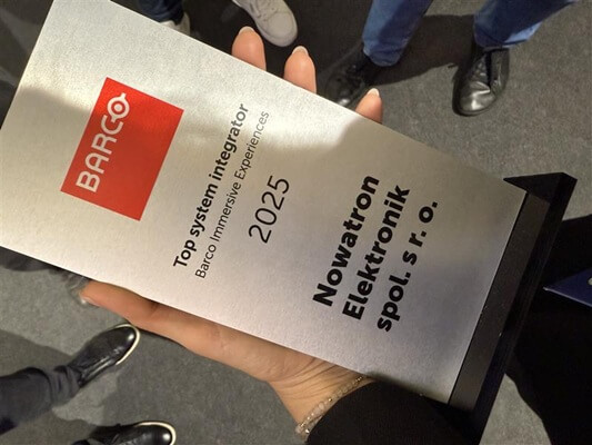 Jedním z nejvýznamnějších momentů celé akce pro nás bylo převzetí ocenění „Top System Integrator 2025“, které jsme obdrželi od našeho dlouholetého partnera a dodavatele společnosti Barco. Toto uznání je pro nás velkou poctou a potvrzením naší odbornosti, kvalitní práce i dlouhodobé úspěšné spolupráce.