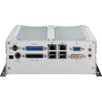 | I/O Interface-Rear | 2-pin Remote Power on/off switch 16 ~ 30V DC input 1 x PS/2 for Keyboard/Mouse 1 x DB25 Parallel Port (Optional GPIO or LVDS interface) 1 x DB44 Serial Port for 4x RS232 (COM2: RS232/422/485 with Auto Flow Control) 2 x GbE LAN ports 4 x USB2.0 ports 1 x DB15 VGA port 1 x DVI-I Port (DVI-D + VGA) 1 x Speaker-out and Mic-in |