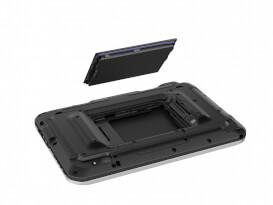 Aby mohl odolný tablet pracovat po celou směnu, je vybaven jednoduchým designem zmáčknutí a přepnutí, který umožňuje výměnu baterií za chodu. Odpadá tak nutnost přerušit práci, vypínat zařízení nebo kvůli výměně baterie zdlouhavě snímat panely. Baterie je dostupná ve dvou velikostech a zařízení může fungovat až 14 hodin na jedno nabití.