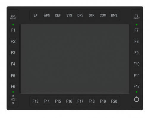 | Option 3 or 4: function keys | Base configuration: no function key Up to 20 user defined function keys left, right and top, dimmable backlight. Standard button layout or GVA Def Stan 23-09 compliant layout |
