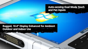 | Provozní specifikace | Tablet iX104C5 byl testován nezávislou třetí stranou na armádní standard MIL-STD-810G: Provozní teplota: -20° C až 50° C Skladovací teplota: -40°C až 71°C Vlhkost: 3% - 95% nekondenzující Teplotní šok:-51° C až 71° C Odolnost vůči dešti: 100 mm / h, vítr 64 km / h po dobu 40 minut Zvířený písek a prach: vítr 48 km po dobu 30 minutes Vibrace: Minimální integrita, vibrace ve voze, US Highway Truck vibrace Solná mlha: vystavení účinku 5% roztoku chloridu sodného Nadmořská výška: provozuschopnost do 12 192 m.n.v. Další testy: Odolnost vůči pádům a vibracím, kontaminaci kapalinou, plísním a slunečnímu záření |