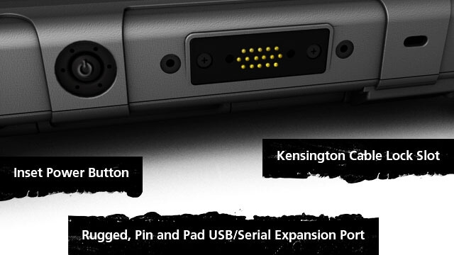 | Vstupy / výstupy | AC/DC vstup dokovací konektor USB 2.0 (x2) RJ-45 Sluchátkový a mikrofonní vstup a výstup 9-pinový COM port (RS232/RS422/RS485) (lze volitelně vyměnit za VGA) Slot pro karty MicroSD a SIM (lehce přístupný bez použití nářadí) Z vrchu a z boku přístupné Pin a Pad rozšiřující porty |