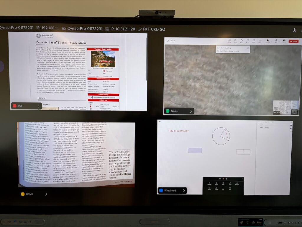 Instalované řešení pro výuku Cynap Pro přináší ojedinělou možnost pracovat jako učitel snadno a rychle s více zdroji v jeden okamžik a zapojit velké množství sledujících.